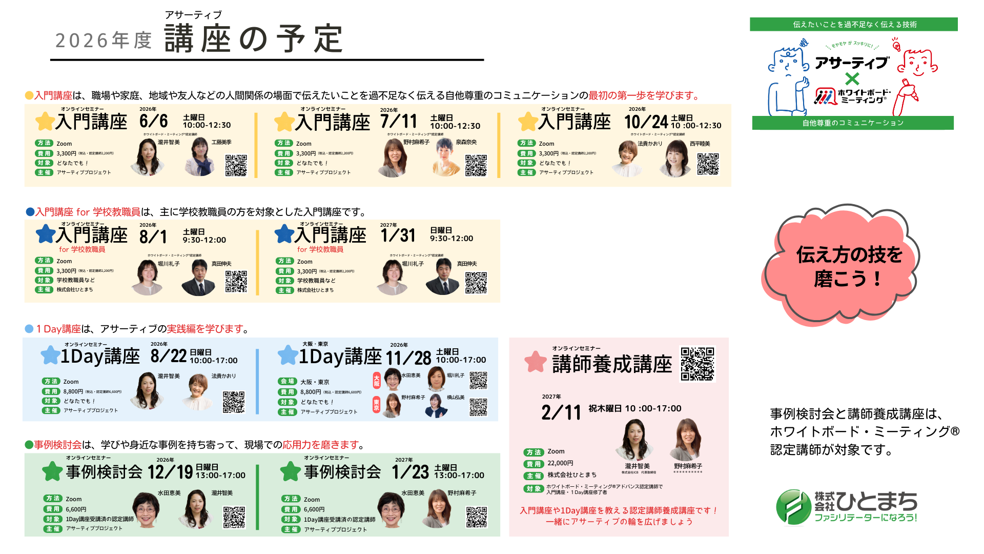 大好評の「アサーティブ×ホワイトボード・ミーティング®」は、2025年度から講座体系をリニューアルしてお届けします。