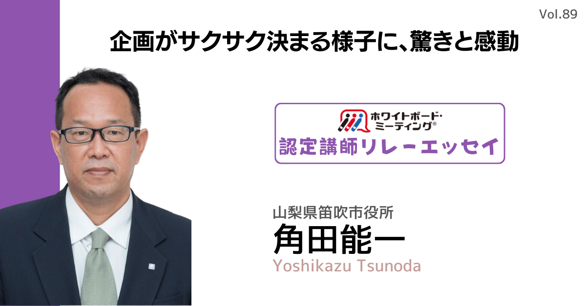 全国で活躍するホワイトボード・ミーティング®認定講師が、さまざまな分野での具体例を「リレーエッセイ」のコーナーでご紹介しています。こちらもぜひご覧ください。