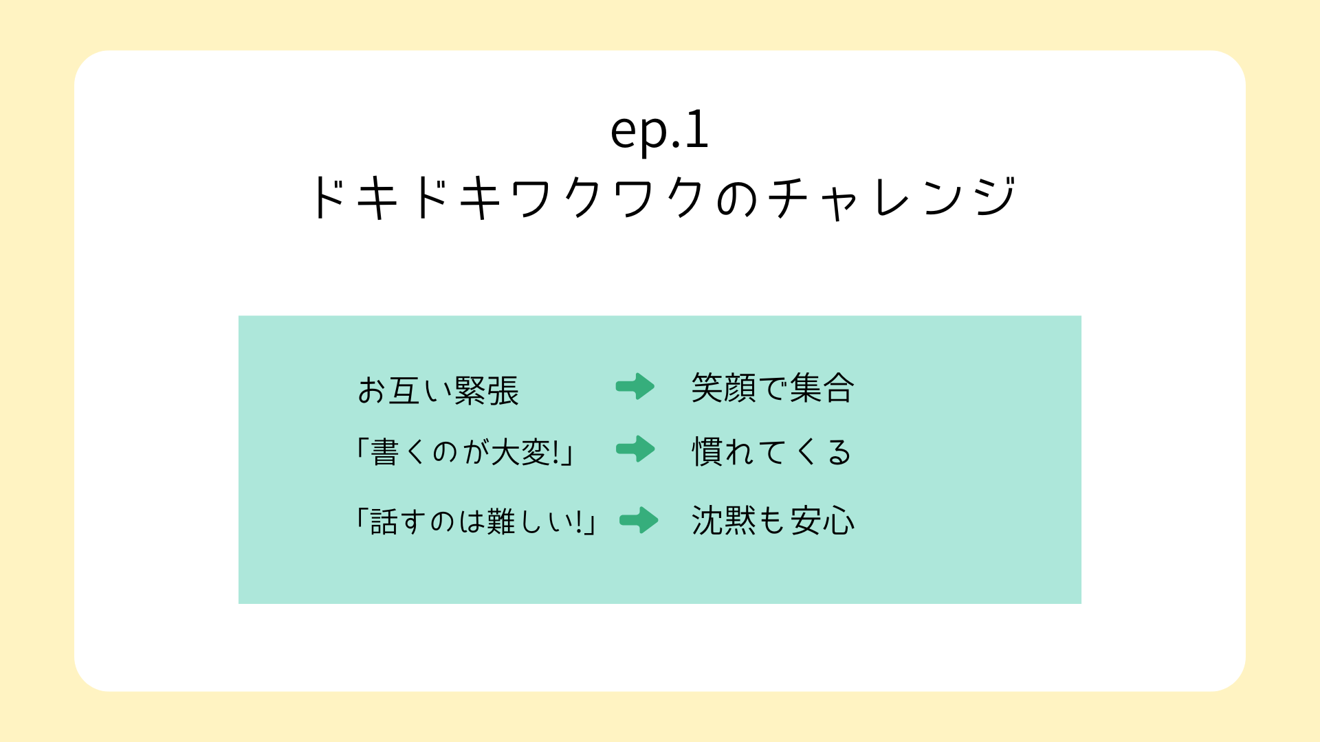 最初は職員みんながファシリテーション初心者。「何が始まるのだろう」「うまくできるかな?」という「ドキドキワクワクのチャレンジ」からスタートしました。ホワイトボード・ミーティング®の基礎を学び、会議フレームの「定例進捗会議」で、話しやすい話題から挑戦。相手の意見を「聞いて書く」ファシリテーションにも徐々に慣れました。定例進捗会議で話すと、短時間で情報共有が進みます。