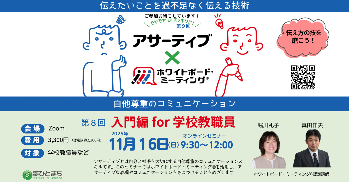 「アサーティブ」とは、日常や対立の場面において、自分と相手を大切にするコミュニーケーションのスキルです。ホワイトボード・ミーティング®︎を活用してして体験する最初の一歩です。