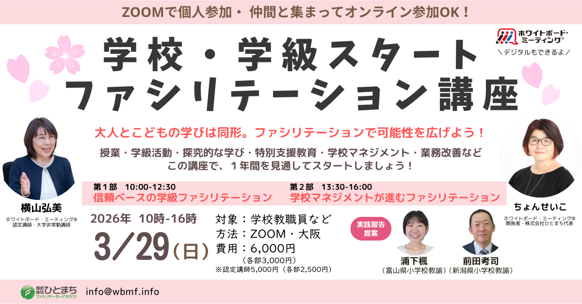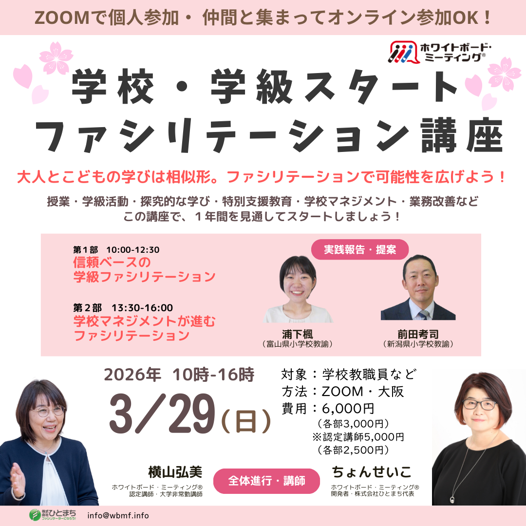 | 日時 | 2026年3月29日(日) 第1部 10時00分〜12時30分 第2部 13時30分〜16時00分 ※ホワイトボード・ミーティング®︎が初めての方は、各部15分前からの説明会にご参加ください。 |