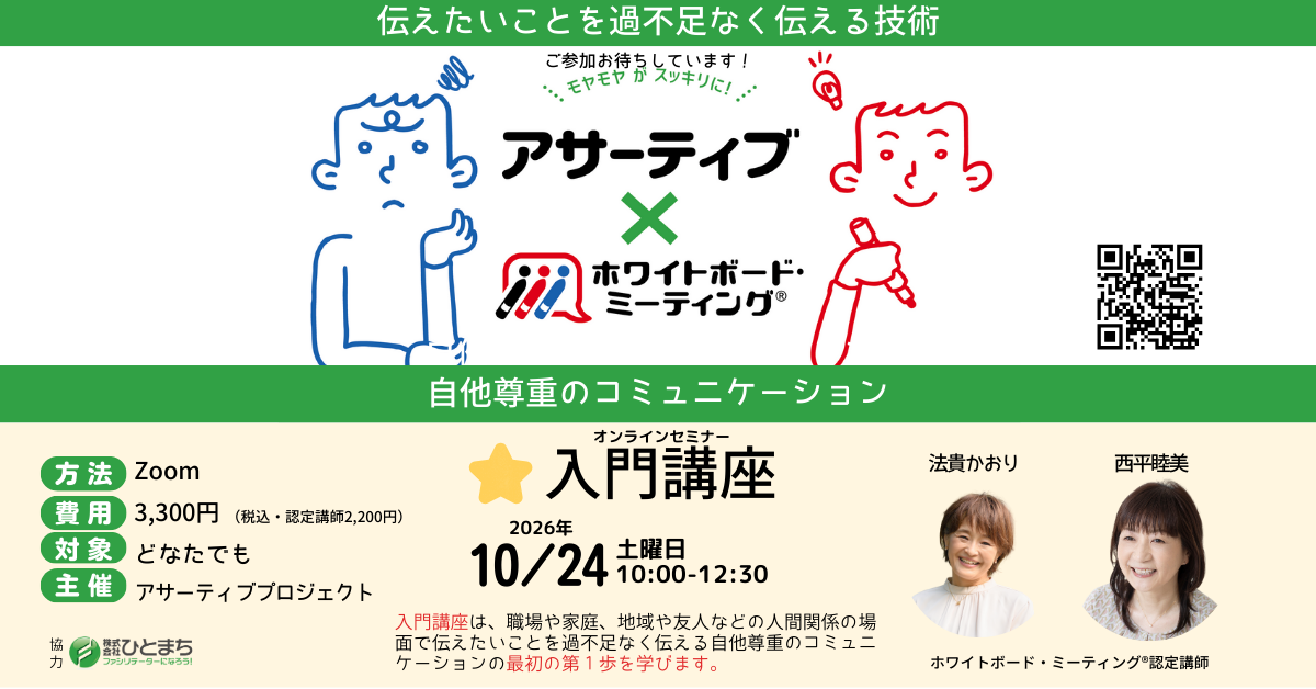 | 主催 | アサーティブプロジェクト(assertivewbm6@gmail.com) |