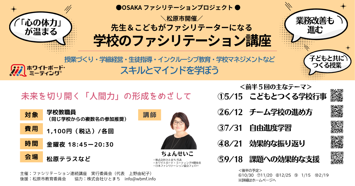 授業づくり・学級経営・生徒支援・インクルーシブ教育・学校マネジメントなどスキルとマインドを学ぶファシリテーション連続講座です。